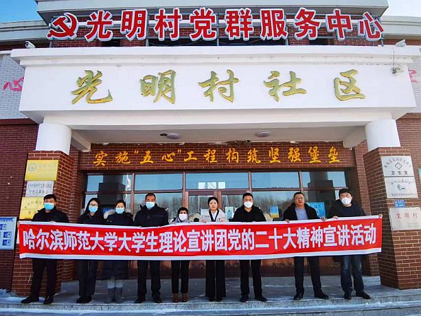 为深入学习宣传贯彻党的二十大精神,全面贯彻习近平新时代中国特色社会主义思想,不断精准学校共青团服务地方发展的切入点,让青年理论宣讲惠及不同群体、渗透不同领域,哈尔滨师范大学大学生理论宣讲团全体成员自返乡后走进基层开展理论宣讲活动,截至12日,宣讲团成员分别向大庆、齐齐哈尔、葫芦岛、呼伦贝尔等市(县、区)的基层党员干部和群众、中小学师生开展宣讲活动,累计开展宣讲7场,用“青言青语”“乡言乡语”将党的二十大精神传递至家乡母校、乡村社区。