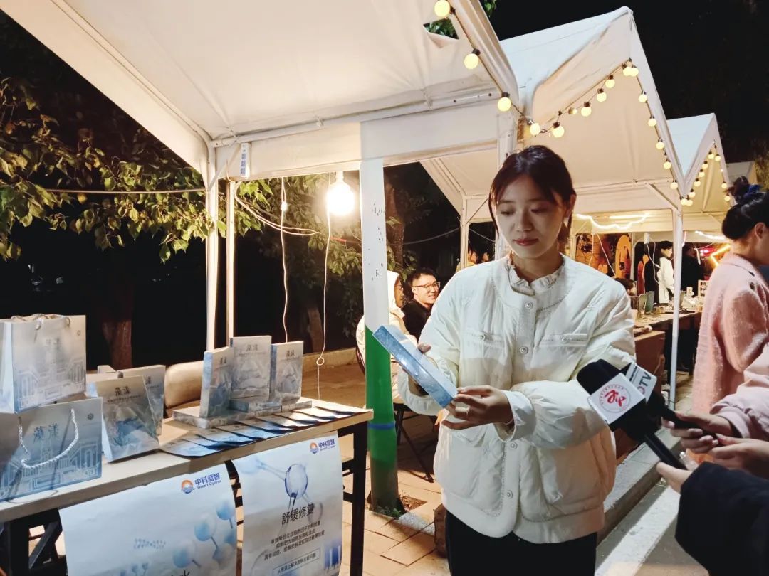 刘妍老师:科研工作我们比较熟悉,但其实产品的研制我也是新手,这个过程真的是跟同学一起学习,共同进步。我印象最深刻的其实还是学生们的创新力,特别是在产品的研发和如何销售的这个过程中。我们产品的包装,大家都看到,淡雅,简洁,又很有特色,其实在产品形成开始,包装也是学生自己设计的,对于生物专业的学生来说,不容易;但开始我是不太喜欢这个包装的,我印象里的化妆品包装都比较繁复,奢华;我担心这个包装会不吸引人,怕消费群体不认可,学生们一方面跟我详细解释了他们的创意理念,另一方面学生们就拿着这个设计做了一个非常“广泛深入”的调查,有的回家问了父母,有的问了闺蜜,有的问了创意市集其他的同行,有的问了购买者,还问了公司、学姐、老师等等,我真的非常佩服学生们的这份执着和勇气,最终我们选用了这个包装,现在看效果还不错。
