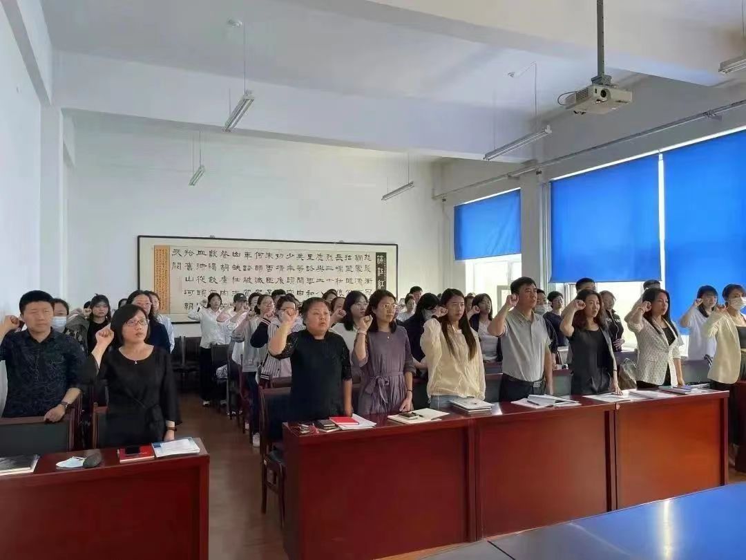 为深入学习宣传贯彻党的二十大精神,传承红色基因,牢牢把握主题教育“学思想、强党性、重实践、建新功”的总要求,贯彻落实“坚持学思用贯通、知信行统一”的根本任务,同时提升支部主题党日活动实效性,发挥样板支部示范带头作用,西语学院于6月7日下午3点在西语楼527会议室举行党务干部培训第三讲——党的二十大主题党日观摩活动。西语学院党委书记王羽、党委副书记吕会庆、全体支部书记和支部委员参加此次观摩活动,活动由西语学院本科生第二党支部书记安艺主持。