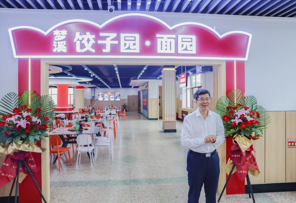 孙立军在致辞中,向在学校食堂不断提档升级,提升民生服务保障能力过程中付出辛勤努力的各职能部门、教职员工表示衷心感谢,并对江南校区饺子园·面园、教工餐厅、民族餐厅的揭牌营业表示热烈祝贺。他指出,学校高度重视师生的“吃住行”等民生问题,将改善江南校区师生的就餐环境、菜品质量和服务品质列为学校今年“挂图作战”的重点任务,列为主题教育攻坚克难、解决民生问题的重点任务,集中力量攻坚,统筹协调推进。学校党委结合江南校区实际情况和师生需求,进行顶层设计和总体部署,对百谷园食堂三楼资产进行整体盘活和规划,在多部门的协调配合下,完成了食堂的升级改造,切实解决了江南校区师生用餐拥挤的实际问题,是我校主题教育取得的阶段性、标志性成果。