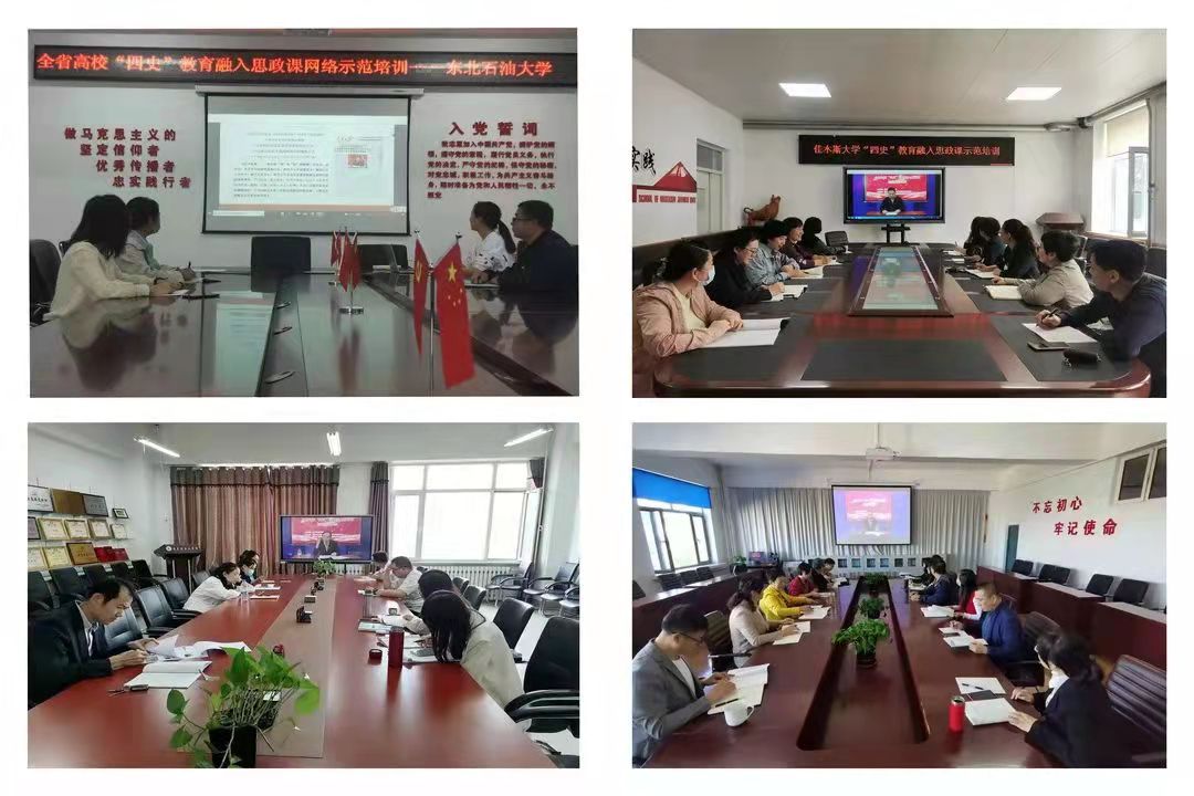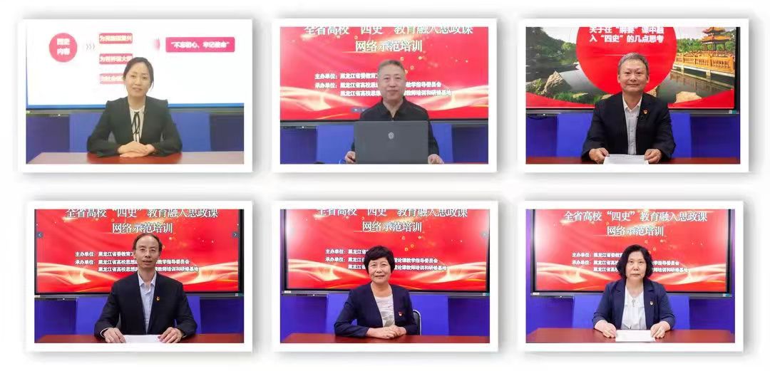 为深入贯彻落实习近平总书记关于深化思想政治理论课改革创新和加强“四史”教育的重要指示批示精神,全面落实习近平总书记在党史学习教育动员大会上的重要讲话精神和《******中央关于在全党开展党史学习教育的通知》的部署安排,充分发挥思想政治理论课在进行以党史教育为重点的“四史”教育中的主渠道作用,9月12日至17日,黑龙江省高校开展了“四史”教育融入思政课示范培训。培训采取网络直播方式,国内专家专题讲座、省内专家详细说课和青年骨干教学示范相结合,覆盖了高校全部思政课程。