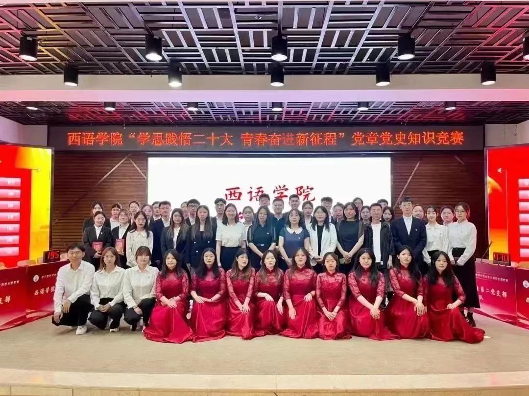 为推动主题教育理论学习全覆盖,通过学习《中国共产党党章》加强党性修养,引导师生党员在党史中汲取智慧和力量,在鉴往知来中强化使命担当,达到“以赛促学、以学铸魂”的目的,6月14日下午,西语学院在梦溪宾馆二楼会议室以“学思践悟二十大,青春奋进新征程”为主题举办党章党史知识竞赛。西语学院党委书记王羽和全体辅导员出席此次活动,全体本科生党支部及研究生党支部代表队参与本次竞赛。