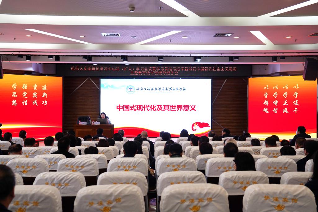 深入浅出,启智增信。学校邀请省委党校李辉教授、我校马克思主义学院院长段虹教授进行2场主题教育读书班辅导报告。报告有理论、有高度、有实践、有创新,内涵丰富,思想深刻,运用生动的宣讲方式和深厚的学理知识将党的创新理论成果讲清、讲透、讲活,把习近平新时代中国特色社会主义思想的内涵和精神实质落实到三尺讲台,带领全校党员干部深刻理解中国式现代化及其世界意义,感悟党的创新理论的思想伟力、实践伟力和真理伟力,切实增进党员干部对党的创新理论的政治认同、思想认同、理论认同、情感认同。