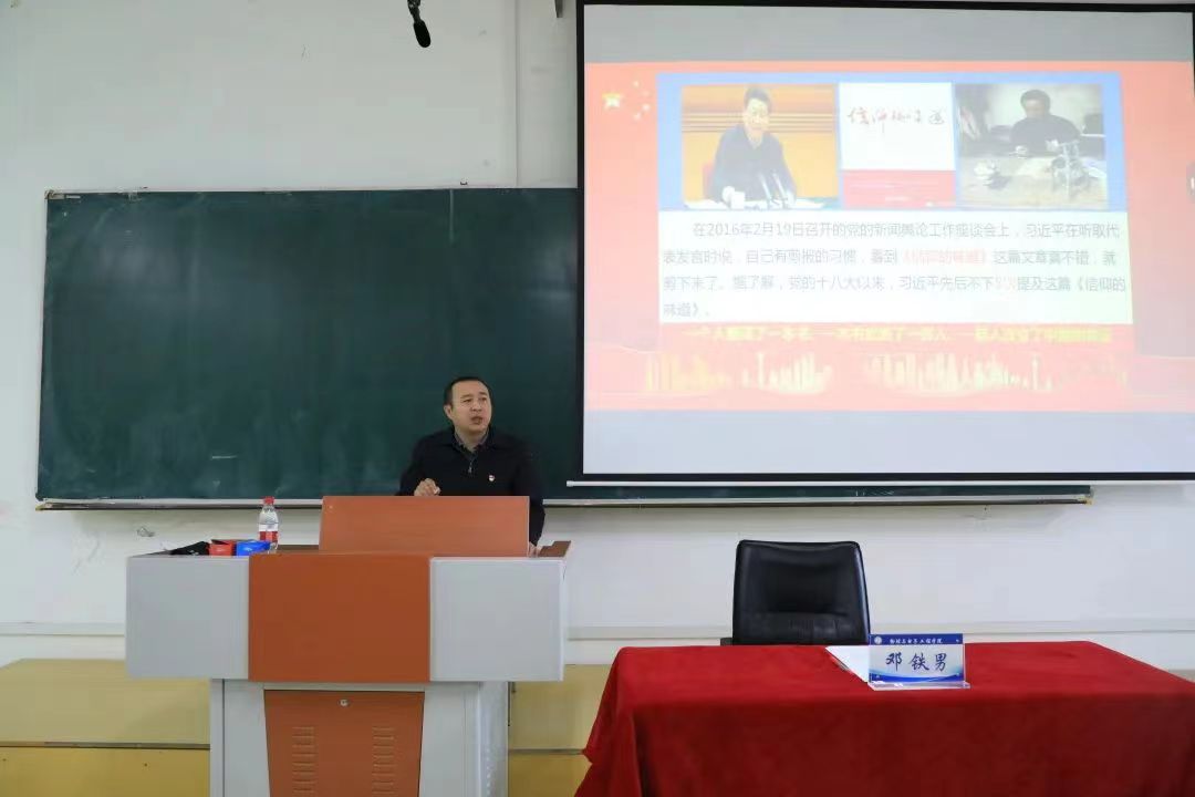 邓铁男以《共产党员必须坚定理想信念》为主题,围绕中国共产党理想信念的基本内容、坚定理想信念的重要意义、坚定理想信念的着力点三个方面展开系统讲解,教育广大党员坚定马克思主义真理信仰,坚定共产主义远大理想和中国特色社会主义共同理想。