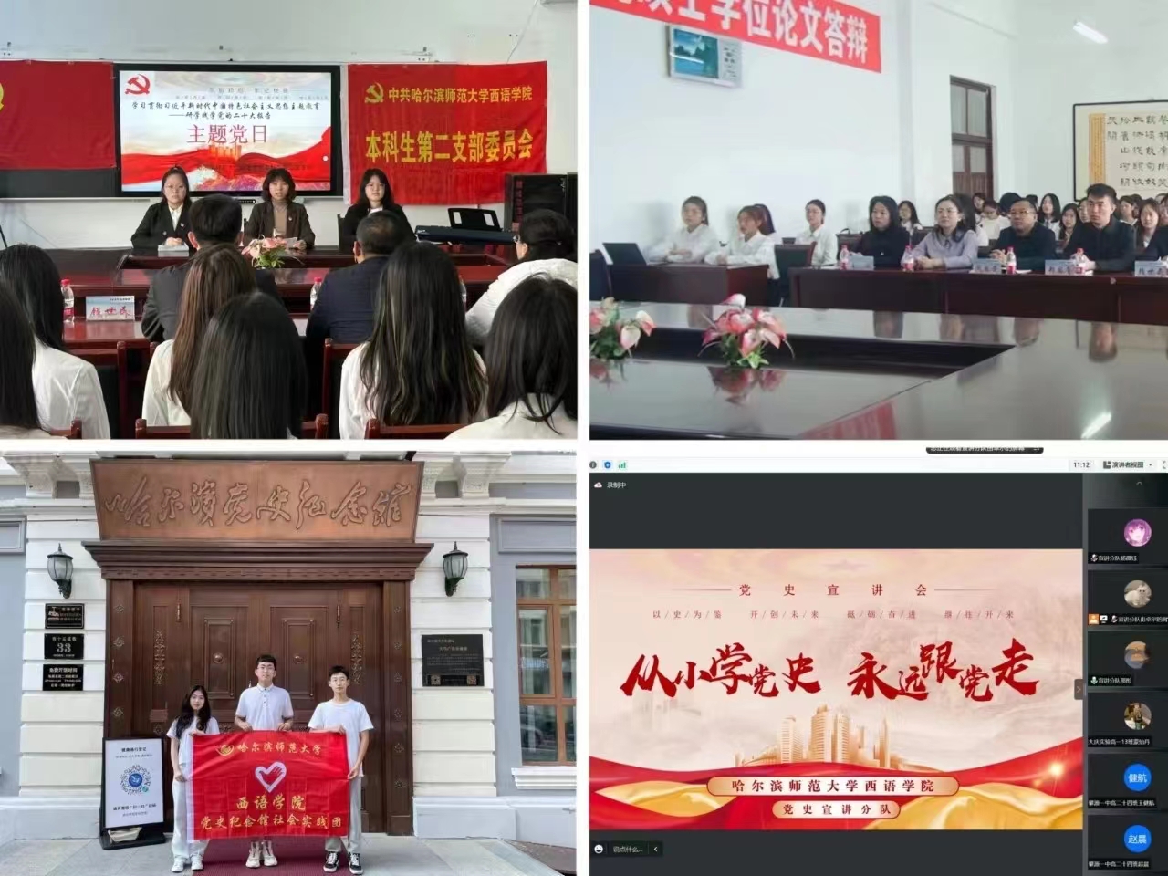 西语学院党委始终将党建工作与业务工作深度融合。持续发挥学科专业优势特色,用英语讲述中国故事、党史故事、龙江故事、校园故事。4月26日,学院“译师大校史,讲师大故事”双语讲解志愿服务团队到校史馆开展志愿服务活动,凝聚激发学生爱校情怀;学院党委将持续推进学生用英文讲中国故事、党史故事,引领广大青年坚定“四个自信”;将持续推进用英文讲述黑龙江艺术史,服务龙江振兴事业,努力做到有始有终、有序有效,有枝有叶、有条有理,有板有眼、有模有样,有滋有味、有声有色的哈尔滨师范大学志愿服务活动,力求成为向基层党支部、全体党员和青年学生延伸的可借鉴、可复制、可推广的活动案例,确保习近平新时代中国特色社会主义思想在哈师大落地开花,入脑入心。