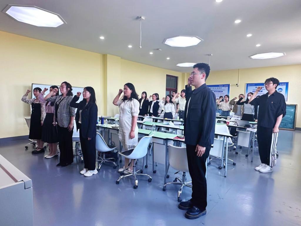 重温誓词回忆初心,凝心聚力整装待发!与会党员在支部书记佟婧的带领下,重温入党誓词。