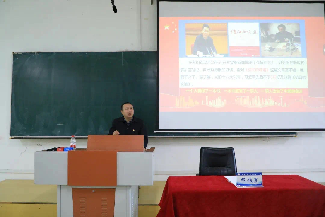 党委书记邓铁男以《共产党员必须坚定理想信念》为题,面向学院全体师生党员讲授专题党课,围绕中国共产党理想信念的基本内容、坚定理想信念的重要意义、坚定理想信念的着力点三个方面展开系统讲解,教育广大党员坚定马克思主义真理信仰,坚定共产主义远大理想和中国特色社会主义共同理想。