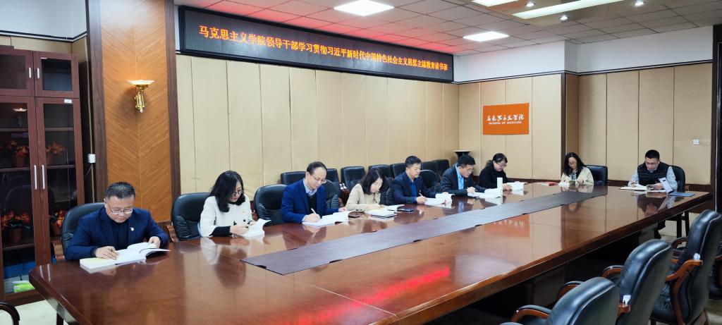 马克思主义学院党委把深入开展主题教育作为一项重大政治任务,同全面落实立德树人根本任务、重点马院建设发展紧密结合,全员参与,内外联动,形成多维度全覆盖学习体系。坚持班子带头学,通过自己学、读书班、专家讲,以“关键少数”带动全员跟进,在全院形成上行下效的良好氛围;坚持教研室党支部专题学,通过集体备课会、主题党日等,推进党的最新理论进教案、进课堂、进头脑;坚持主题教育向青年大学生延伸学,通过举办读书会、晨讲、班团会等活动,引导青年学生从党的创新理论中汲取强大力量。