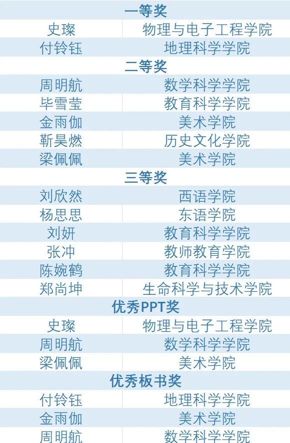 获奖名单