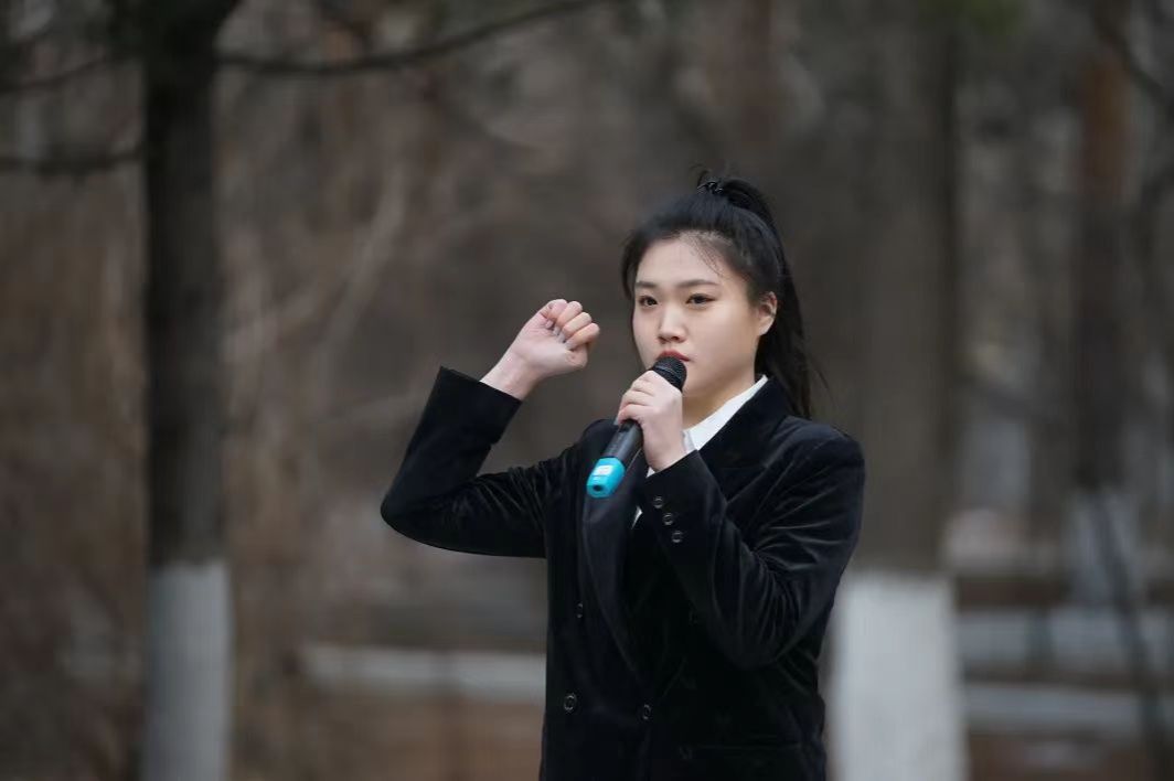 学生代表王镜怡为同学们讲述朱瑞将军的光辉事迹,号召同学们向革命先烈学习,进一步培育爱国主义精神,继承红色基因,赓续红色血脉,用自己的实际行动“把红色基因传承好,确保红色江山永不变色”。