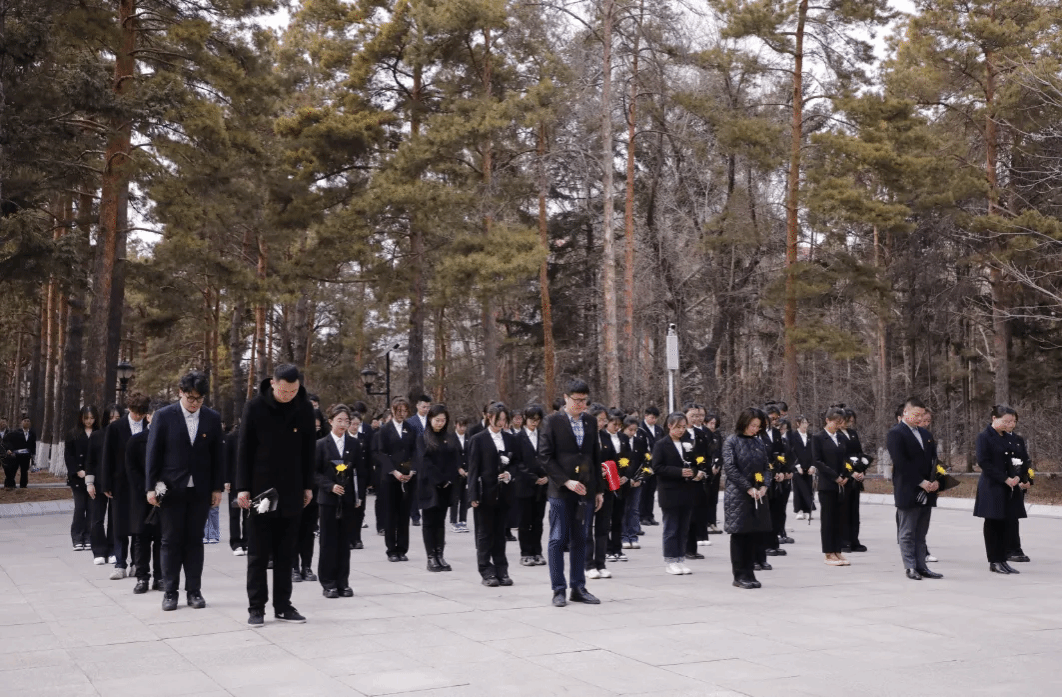 学生代表上前清扫祭奠烈士墓,祭扫后全体师生低头肃立,向为新中国民族解放英勇斗争和为人民事业接续奋斗的革命先烈们默哀致敬。