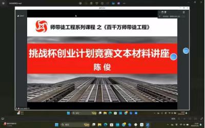 讲座中,陈俊老师结合具体项目实例,从撰写目的、呈现形式、撰写框架、主体内容等方面深入剖析了竞赛文本的各模块要素,讲解了材料撰写的注意事项,并对组建创业团队、构建商业模式、细化项目路演等方面要点和注意点进行了针对性说明,详细介绍了创业项目的侧重点、评委的关注点、路演的关键点和答辩的注意事项等备赛关键环节。培训会采取“线上+线下”相结合形式召开,各学院设立分会场,依托“哈师大青年”微信视频号同步直播。