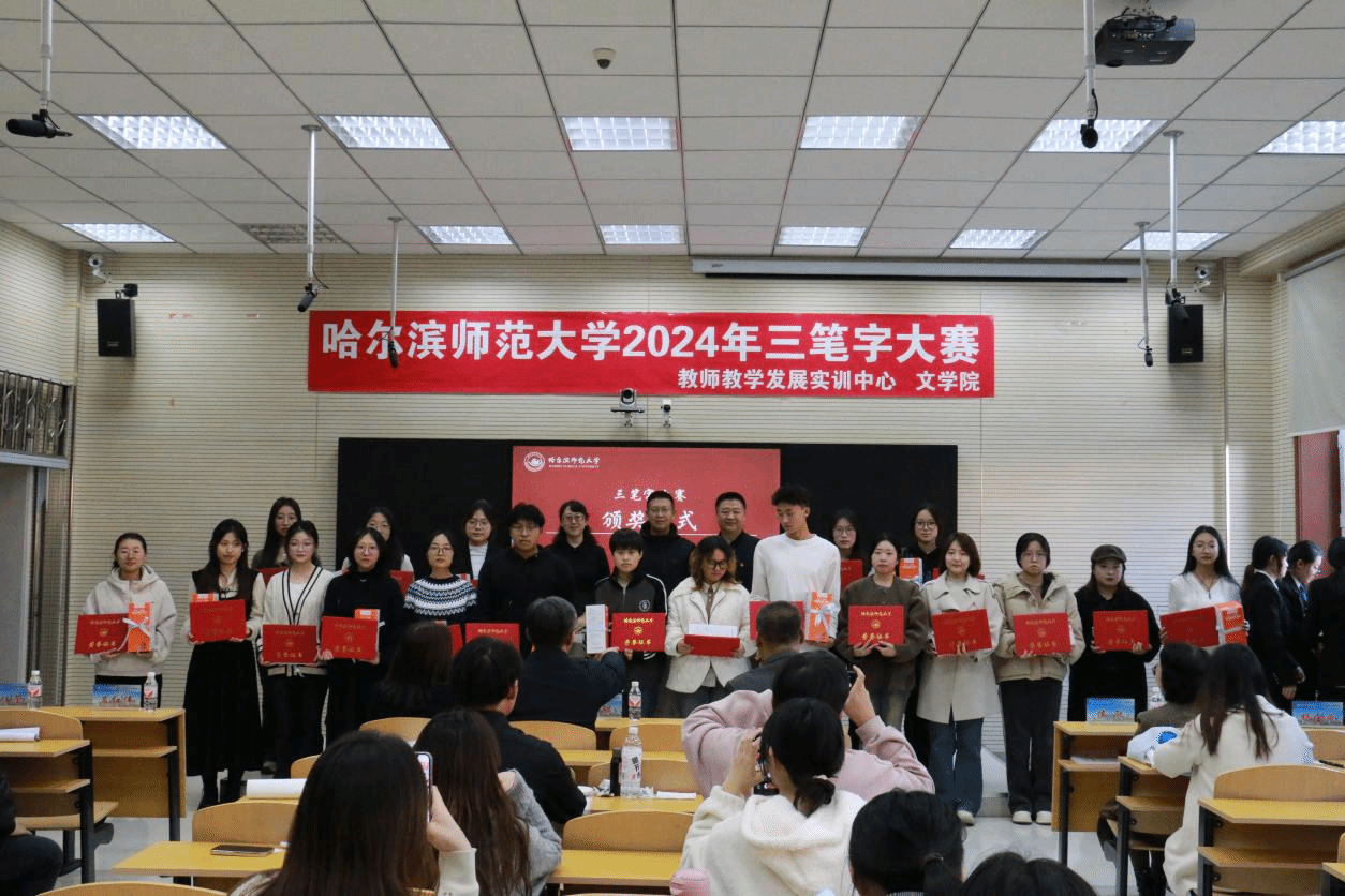 为加大国家通用语言文字推广力度,实施教育家精神铸魂强师行动,提高教师培养培训质量,加强师范生基本功训练,展现未来教师技能风采,由教师教学发展实训中心和文学院共同承办的我校2024年度三笔字大赛圆满落下帷幕。校长蒋鲲出席决赛颁奖仪式,教师教学发展实训中心、文学院主要负责同志,文学院评委及参赛选手参加颁奖仪式。