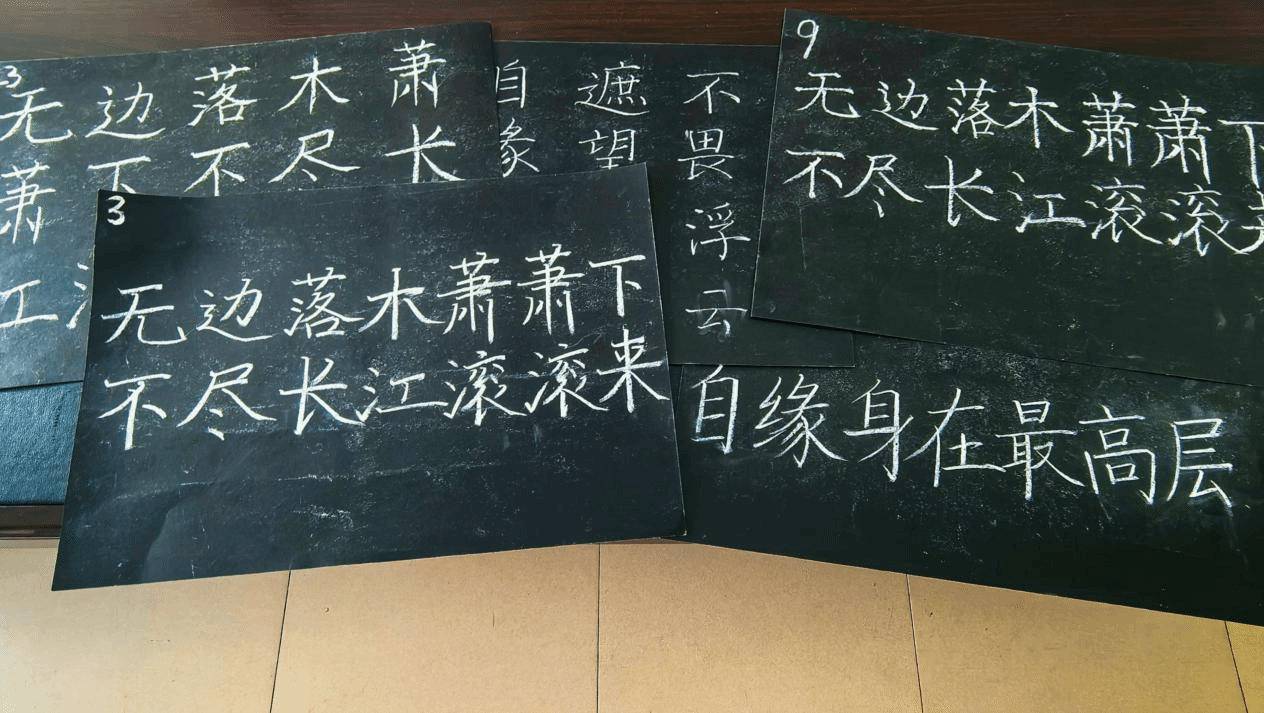 此次比赛共设立硬笔、软笔和粉笔三个类目,历时一个多月,共收到了全校15个学院的193幅参赛作品,其中硬笔书法66幅、粉笔字66幅、毛笔字61幅。经文学院评委评选,最终67幅优秀作品脱颖而出入围决赛。决赛均采用现场书写的形式,参赛选手在现场挥毫泼墨,同台竞技,各展风采。