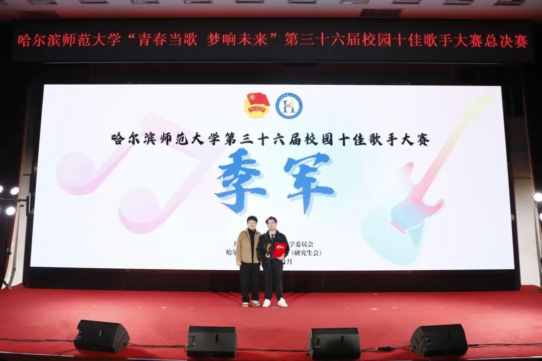 校团委组织部副部长李钰婷为十佳歌手颁奖