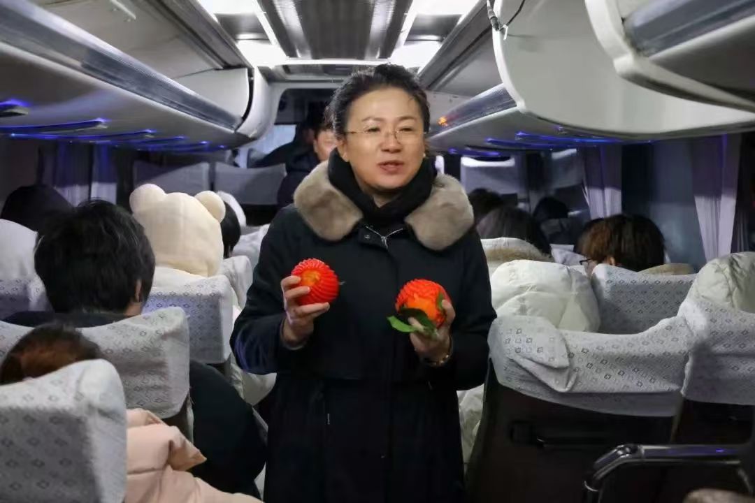 八载爱心送考路,岁岁深情护远航。发车前,校党委常委、宣传部部长张艳君在学生处相关负责同志的陪同下来到送考点为考研学子暖心送行。张艳君踏上爱心送考车,为考生们加油打气、舒缓压力,言辞间满是鼓舞与关怀。“别紧张,就当是平日一场演练,你们准备这么久,知识都在脑袋里装得稳稳的,放轻松去考!”笑语盈盈,轻拍学子肩膀,并亲手递上橙子,祝福考生“橙”功上岸、心想事“橙”。听到师长的热情鼓励,同学们脸上绽出笑颜,考前焦虑得到了些许缓解。