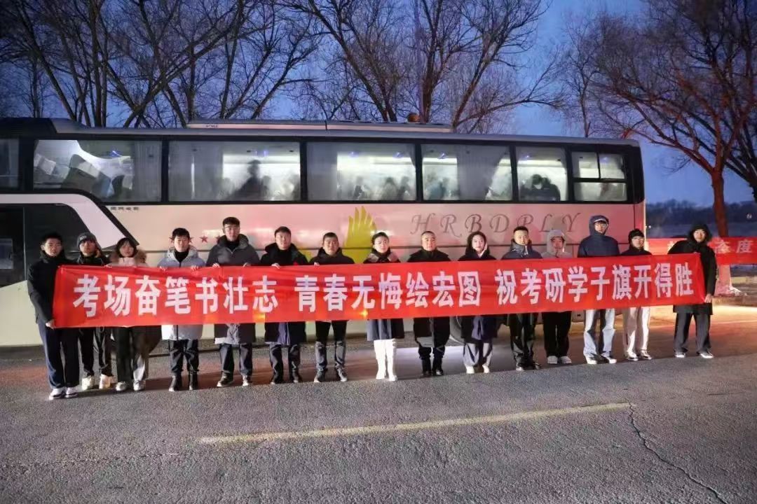 12月21日,2025年全国硕士研究生招生考试拉开帷幕。当日,哈师大校园在冰雪装扮下显得格外宁静,却又涌动着别样的热潮。早晨六点,晨曦初现,江北校区枫叶广场和江南校区艺术大厦前,“爱心送考车”一字排开,车内的考研学子们目光坚毅,满是奋进的力量。这是哈师大暖心送考的第八年,岁岁年年,这份守护从未缺席。
