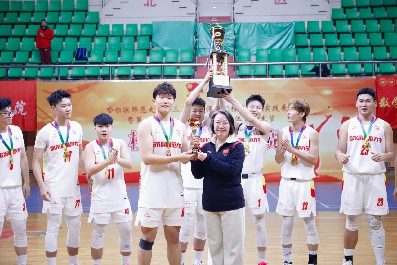 颁奖仪式上,郭砾为本届FMVP球员和冠军队伍美术学院颁奖。张艳君为亚军队伍数学科学学院颁奖。学生工作部(学生处、武装部)部(处)长王彦庆为季军队伍地理科学学院颁奖。学生就业指导处处长王阿诺为优秀组织单位颁奖。校团委书记刘春玲为最佳人气球队西语学院和最佳贡献奖体育科学学院颁奖。体育科学学院党委书记韩大伟为精神文明奖获奖单位颁奖。学生工作部(学生处、武装部)副部(处)长钱正龙为2025校园篮球联赛MVP和裁判员代表颁奖。体育科学学院党委副书记、正处级辅导员冯铁南为三分投篮大赛冠军颁奖。