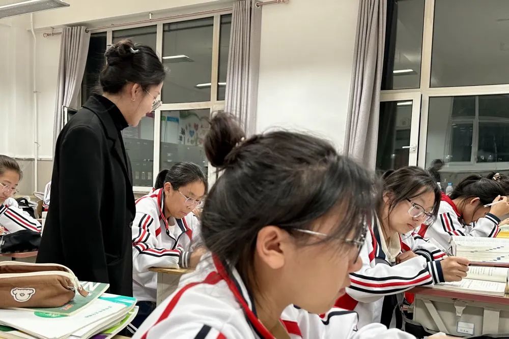 刘羲檬在教室辅导学生学习。新华社记者 徐凯鑫 摄