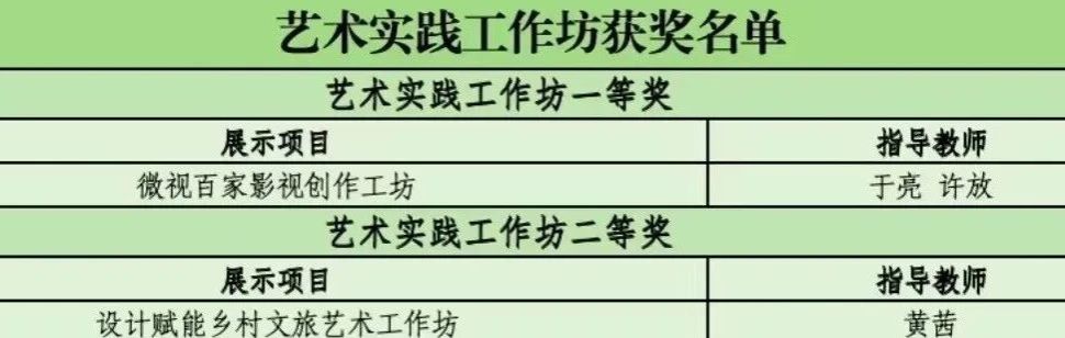 艺术实践工作坊获奖名单