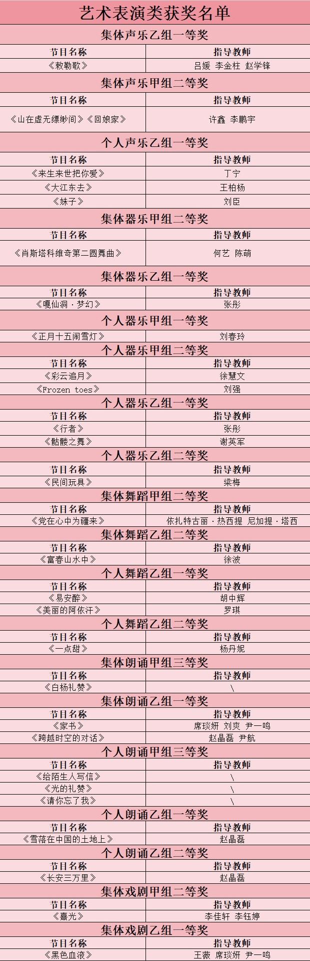艺术表演类获奖名单