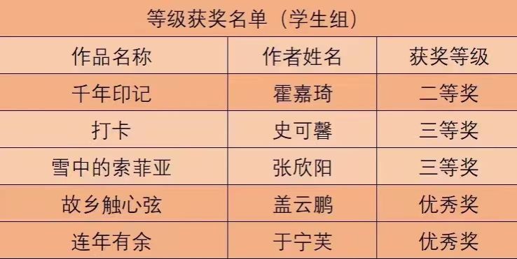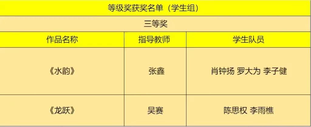 等级获奖名单(学生组)