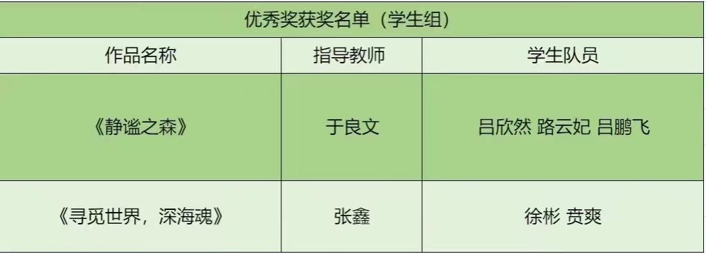 优秀获奖名单(学生组)