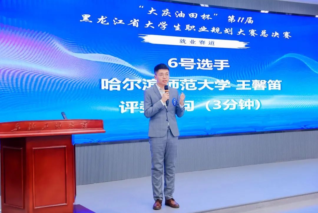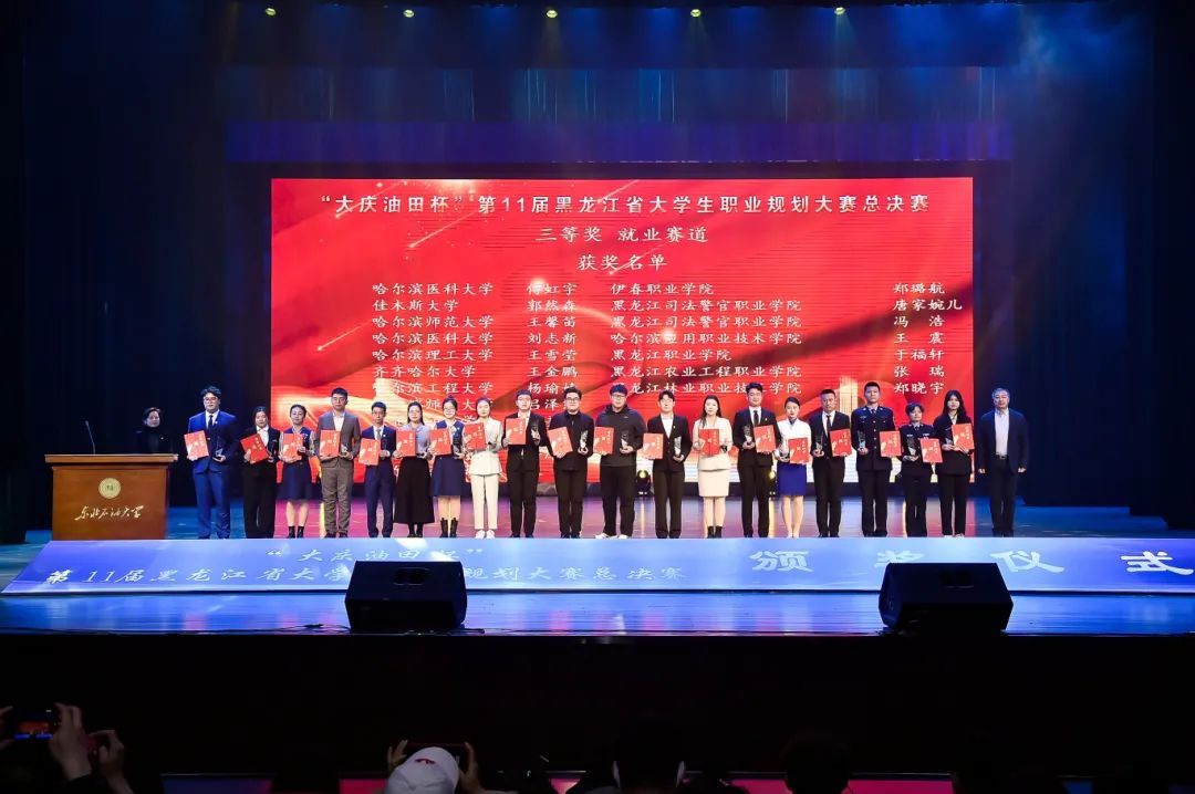 (吕泽东、王军胜/文)3月15日,由黑龙江省教育厅主办、省大学生就业创业指导中心与东北大石油大学承办的第11届黑龙江省大学生职业规划大赛省级决赛在东北石油大学举办。省委教育工委副书记、省教育厅党组成员、副厅长雒文虎出席颁奖典礼并讲话。我校学生就业指导处处长王阿诺、地理科学学院党委副书记陈莹莹、选手指导及带队教师现场观赛。