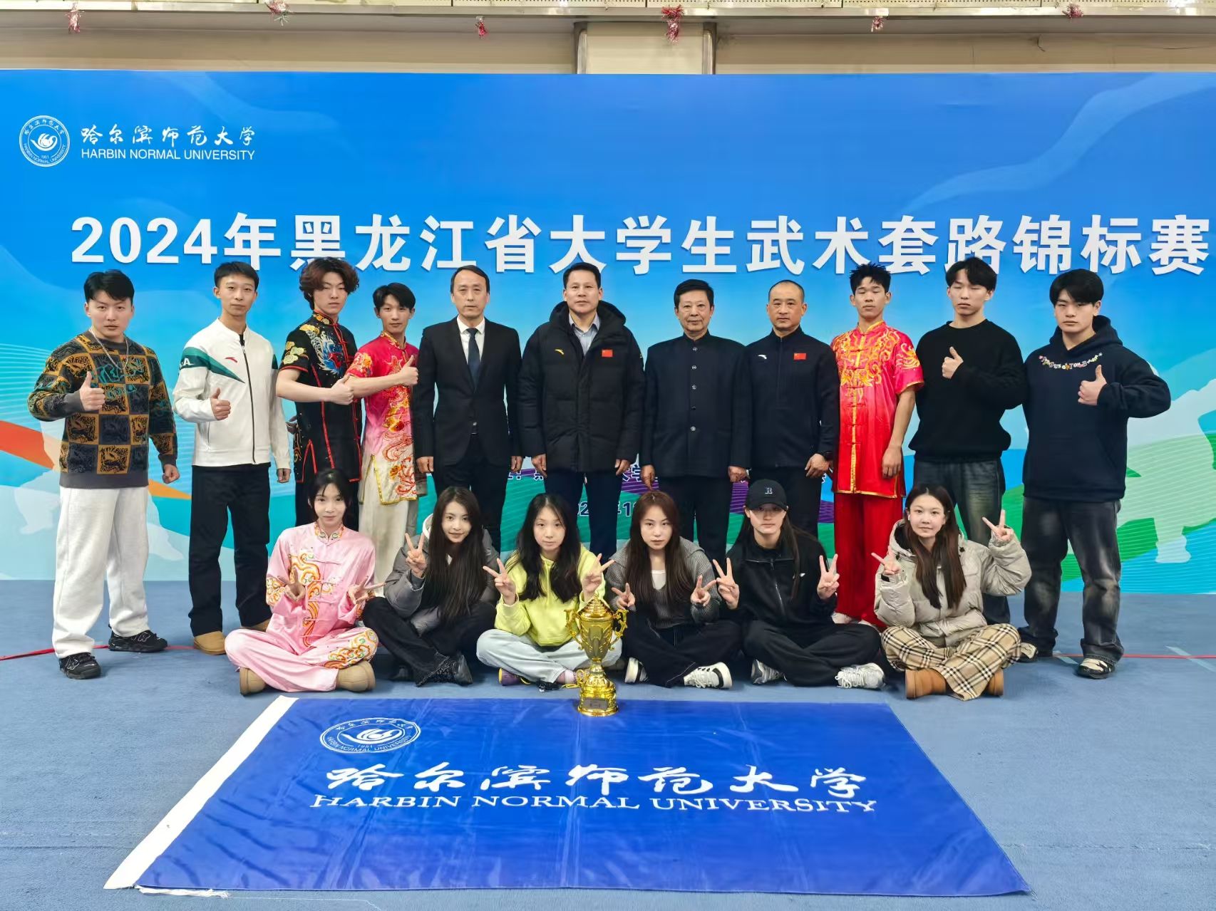 12月14日由黑龙江省学生体育协会主办,哈尔滨师范大学承办的 2024 年黑龙江省大学生武术套路锦标赛在我校体育馆拉开帷幕,共有来自我省23所高校的273名运动员报名参赛。比赛分为甲、乙、丙组共计26个单项的比赛,我校武术代表队参加了甲组和乙组的比赛。经过两天的激烈比拼,共获得17块金牌、14块银牌、5块铜牌和乙组团体总分第一名的好成绩。