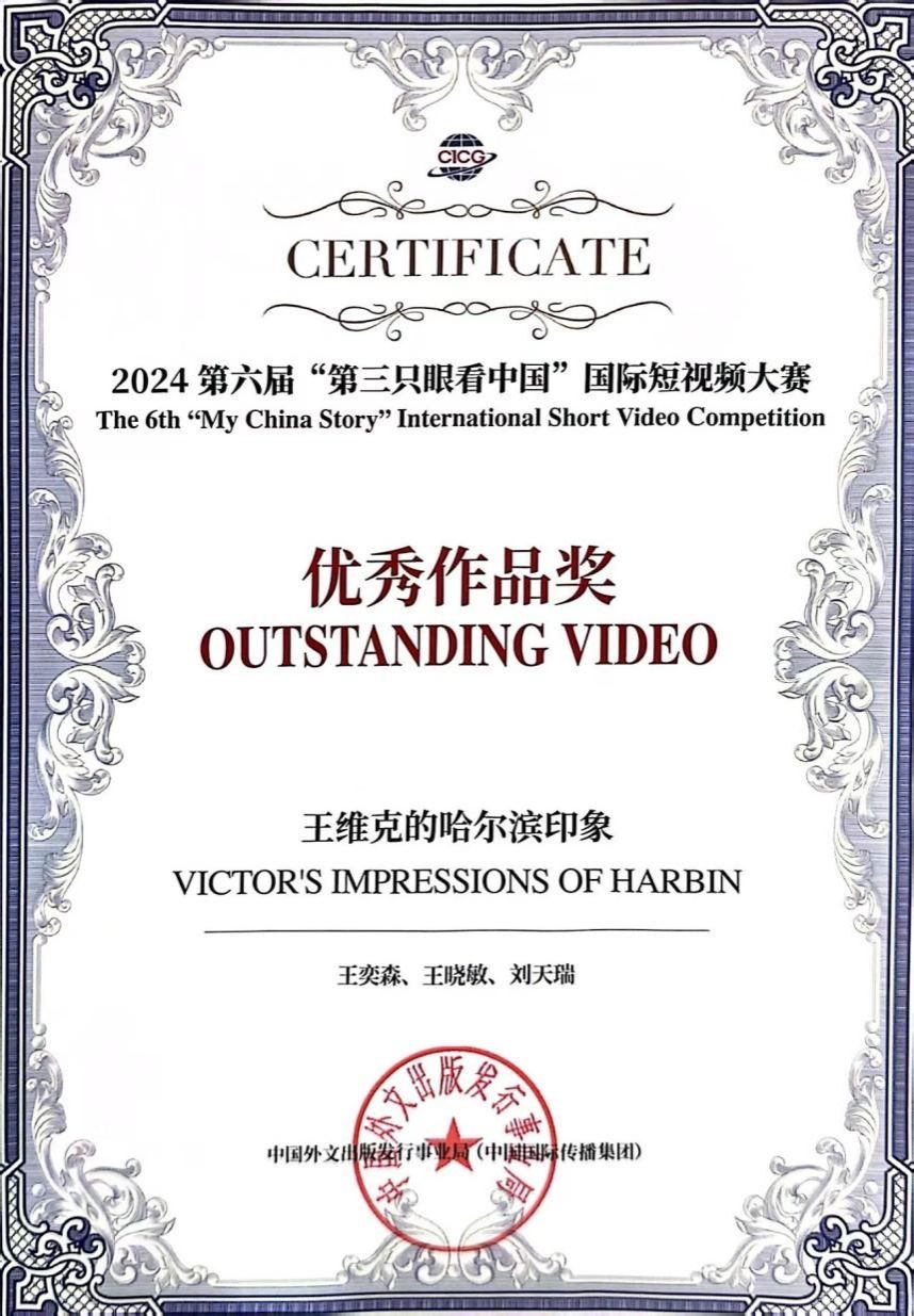 12月19日,由中国外文局、黑龙江省人民政府新闻办公室主办,哈尔滨市委宣传部、中国外文局煦方国际传媒承办的2024第六届“第三只眼看中国”国际短视频大赛颁奖典礼在哈尔滨举行。大赛共征集到来自世界各地的作品59559部,覆盖五大洲130多个国家及地区。经传媒、影视、互联网、国际传播等领域30余位中外籍专业评委进行三轮评审,最终评选出112部获奖作品。