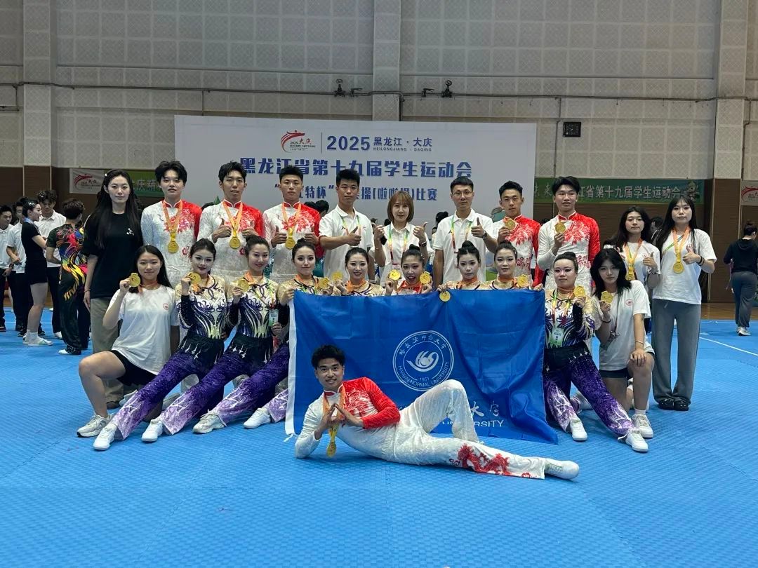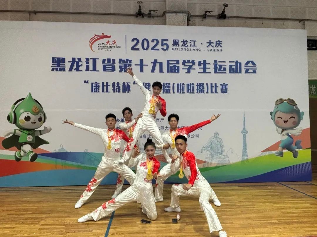 健美操队由韩大伟担任领队,肖宁宁、鲁承琨担任教练,男女共19名运动员组成,经过激烈比拼,用充满激情的表演和协调一致的动作征服了评委,取得了乙组团体冠军和所有参加的5个单项金牌。成绩如下: