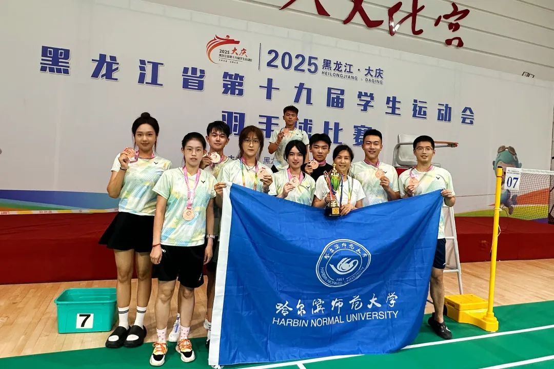 学校羽毛球队由崔松鹤担任领队、杨秀君担任教练,乙组男女共9名队员组成。队员们在训练中精益求精,在赛场上默契配合,凭借扎实的技术与坚韧的毅力全立冲刺。团体赛中,9名队员攻防协作紧密,从小组赛到淘汰赛稳扎稳打,最终斩获乙组混合团体季军,展现了强劲的团队实力。单项赛场同样表现亮眼:女单亚军:张烨瑶 ;男单第四名:卢博宇。