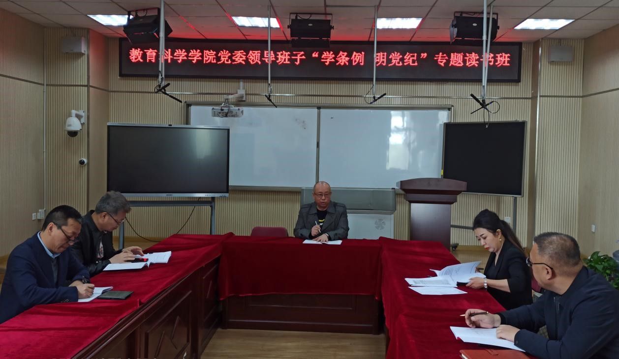 (林善城/文)为贯彻落实全面从严治党的要求,深入推进党纪学习教育,4月28日上午,教育科学学院领导班子“学条例 明党纪”专题读书班开班式在社科楼213室举行,学院副处级以上领导干部出席。开班式由学院党委书记刘兆华主持。
