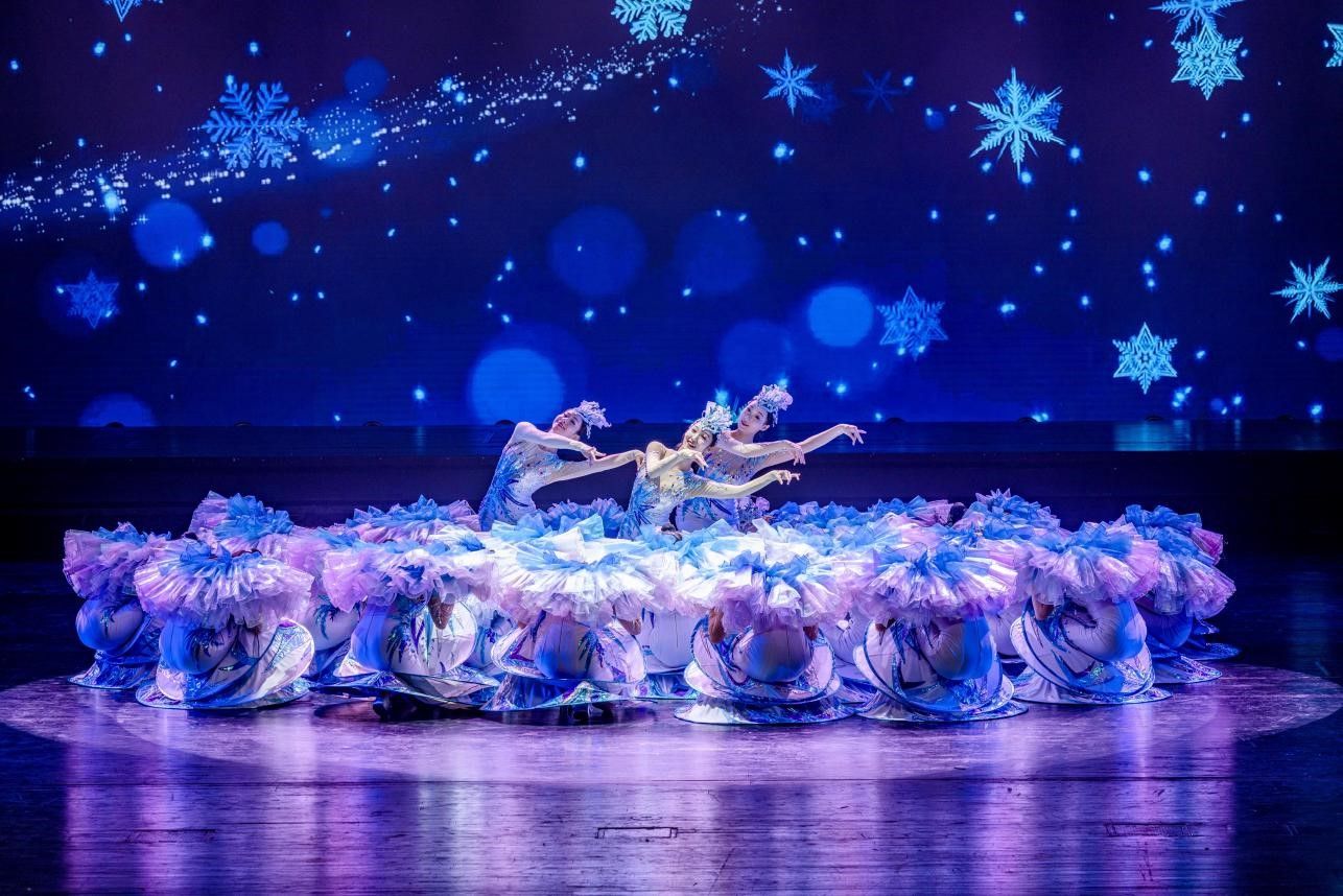 舞台上,灯光渐暗,音乐轻启,仿佛瞬间将人拉入了一个冬日的童话。圣洁的冰凌花,在这梦幻的舞台上卓越绽放。舞蹈以浪漫的诗歌意象为笔触,勾勒出冬季独有的银装素裹,每一幕都是对冰雪仙境的完美诠释。