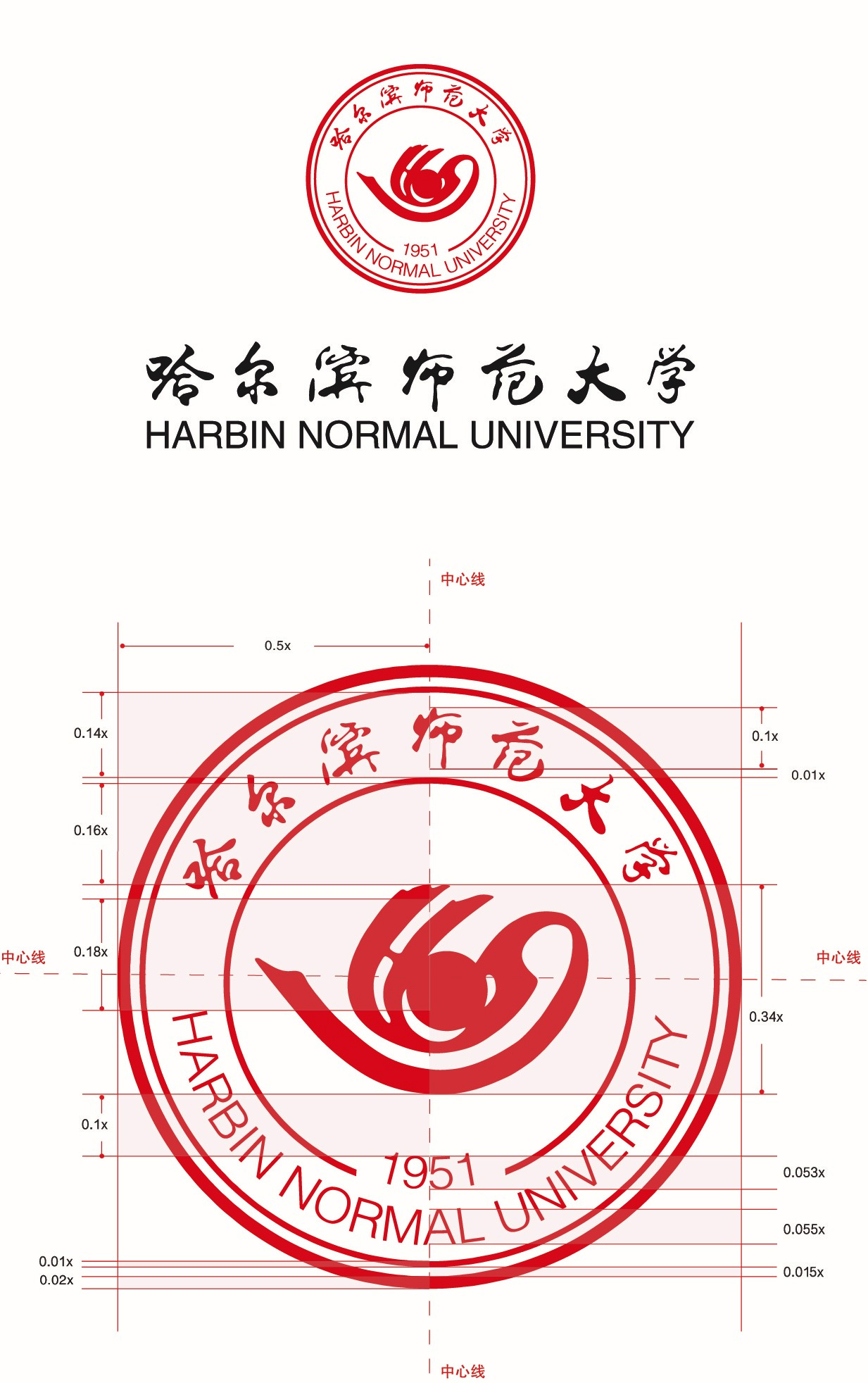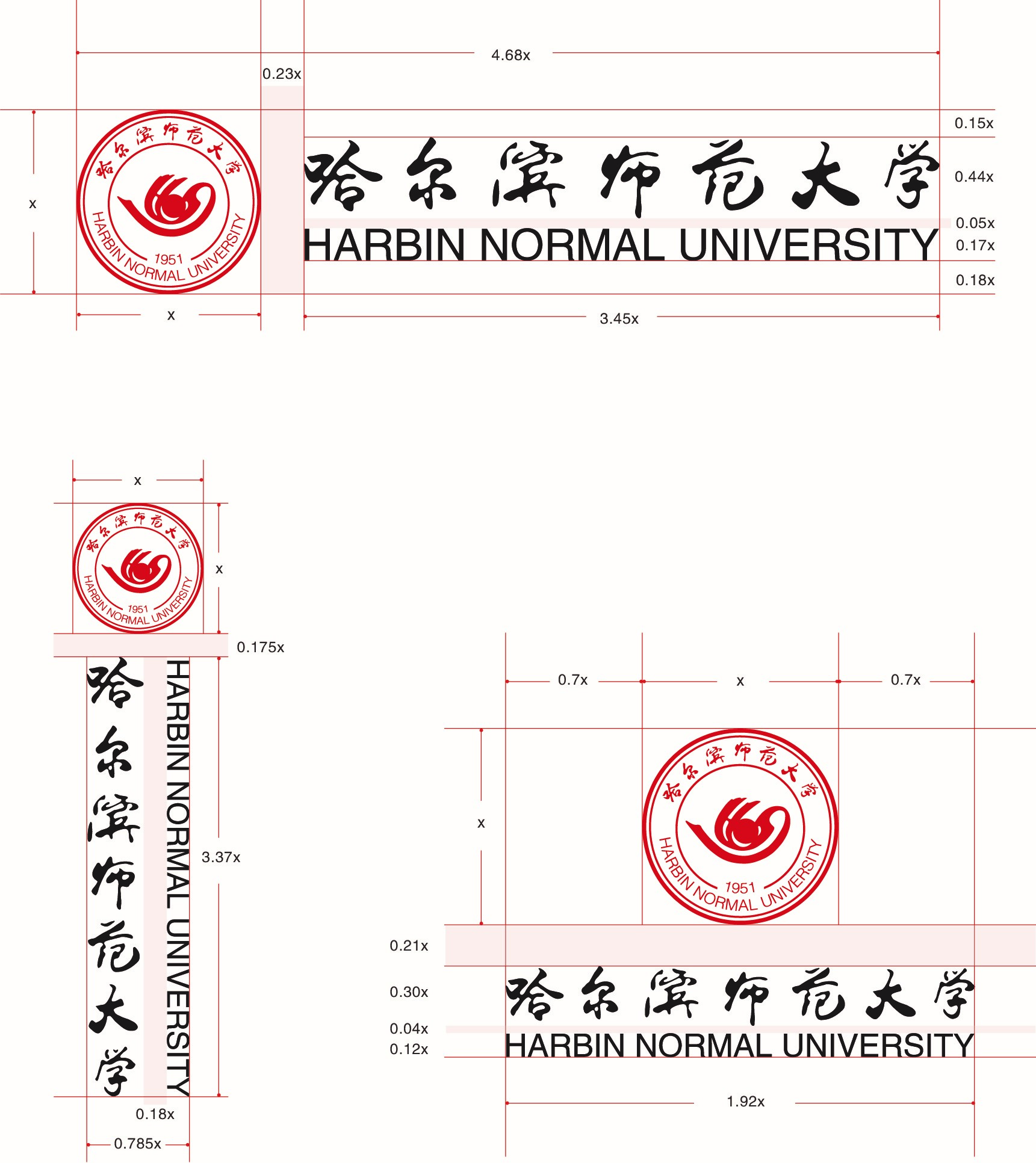 为适应不同使用场合和载体环境,特规定了哈尔滨师范大学校徽与标准字的多种常用组合方案,以确保学校视觉形象传达的清晰、完整和统一。