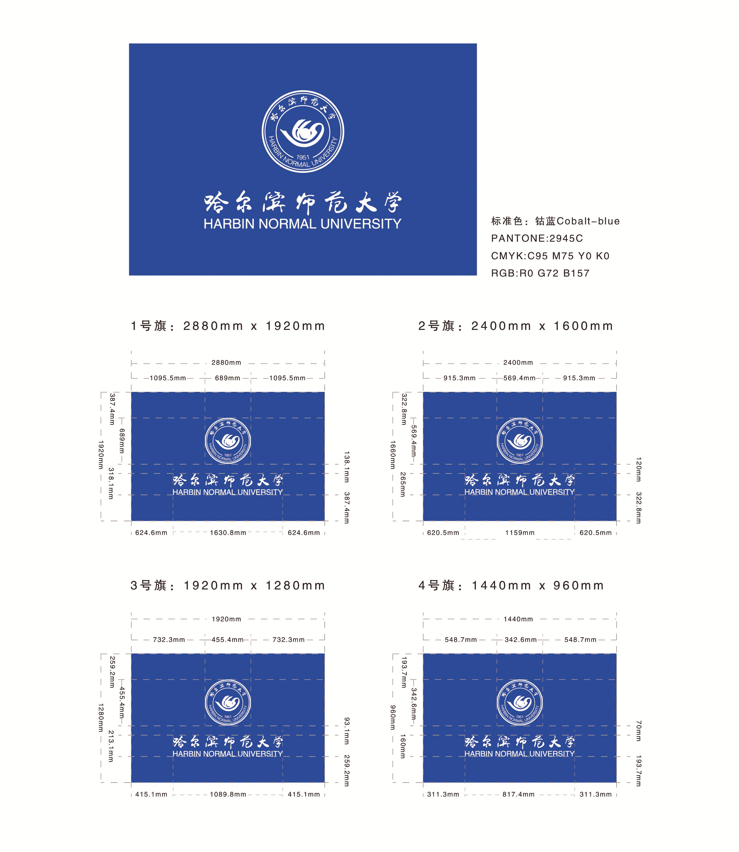 旗面为钴蓝色配以白色图文信息。
