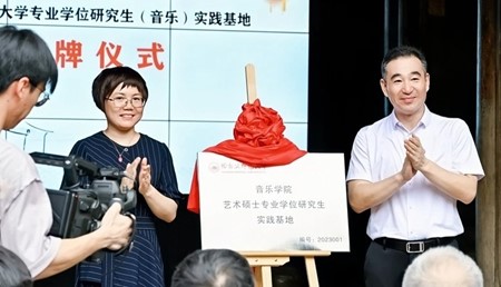 在喜迎中国共产党建党102周年之际,为推动学习贯彻习近平新时代中国特色社会主义思想主题教育走深走实,加强研究生实习实践基地建设,提高研究生教育培养质量,哈尔滨师范大学音乐学院在杭州市富阳区大源镇红色报刊史料研学中心设立艺术硕士专业学位研究生实践基地。6月29日下午,实践基地挂牌仪式隆重举行。挂牌仪式由杭州市富阳区社科联主席、新闻出版局局长黄玉林主持,杭州市富阳区委宣传部部长张鹏出席了此次挂牌仪式。哈...