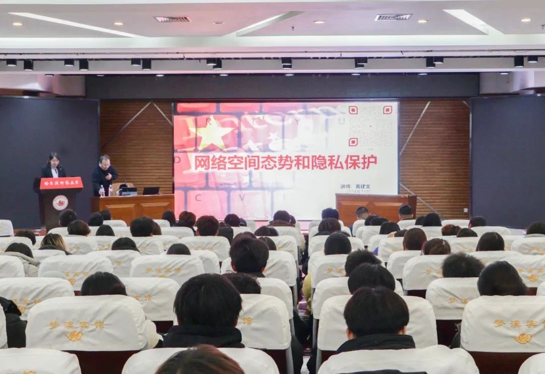 为增强广大师生网络安全意识和防护能力,营造安全、健康、文明的校园网络安全环境,11月18日下午,学校于梦溪宾馆二楼会议室举办题为“网络空间态势和隐私保护”的网络安全专家讲座。本次讲座邀请黄建文主讲,计算机科学与信息工程学院物联网工程系安全方向教师、2022—2024级物联网工程专业全体学生及学校宣传工作相关学生骨干参加讲座。讲座伊始,首先由李英梅向在场的所有听众介绍网络安全、网络空间安全态势、隐私保护的重要性及意义,...