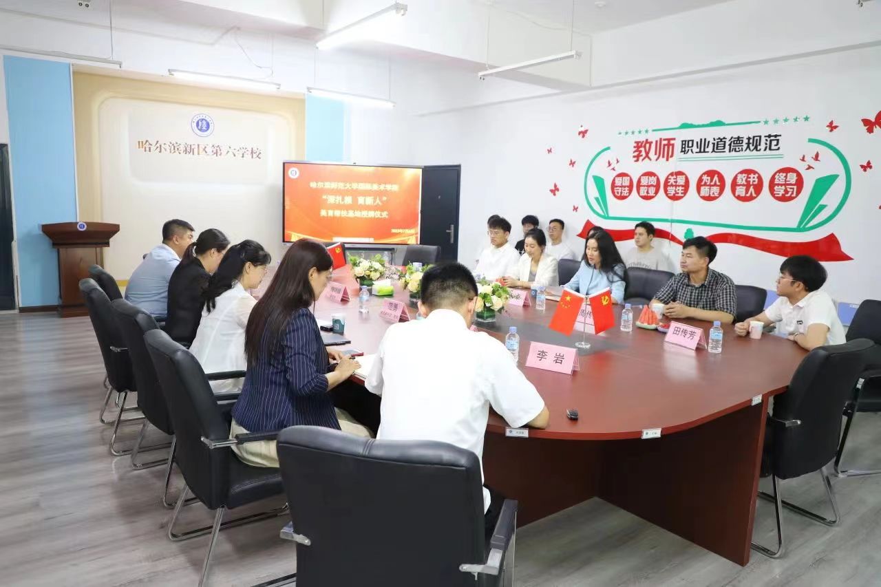 为推进主题教育走深走实,打造国际美术学院特色党建品牌,更好传承龙江精神,国际美术学院在全省中小学校中开展“深扎根、育新人”美育帮扶活动。7月6日,国际美术学院党委带领研究生党支部和本科生党支部赴哈尔滨新区第六学校开展“深扎根、育新人”美育帮扶活动及授牌仪式。学院党委书记李卓,学院党委委员周传递,版画系系主任、黑龙江省版画艺委会主任王芸,学院版画教师房业晨,2022级辅导员田传芳,哈尔滨新...