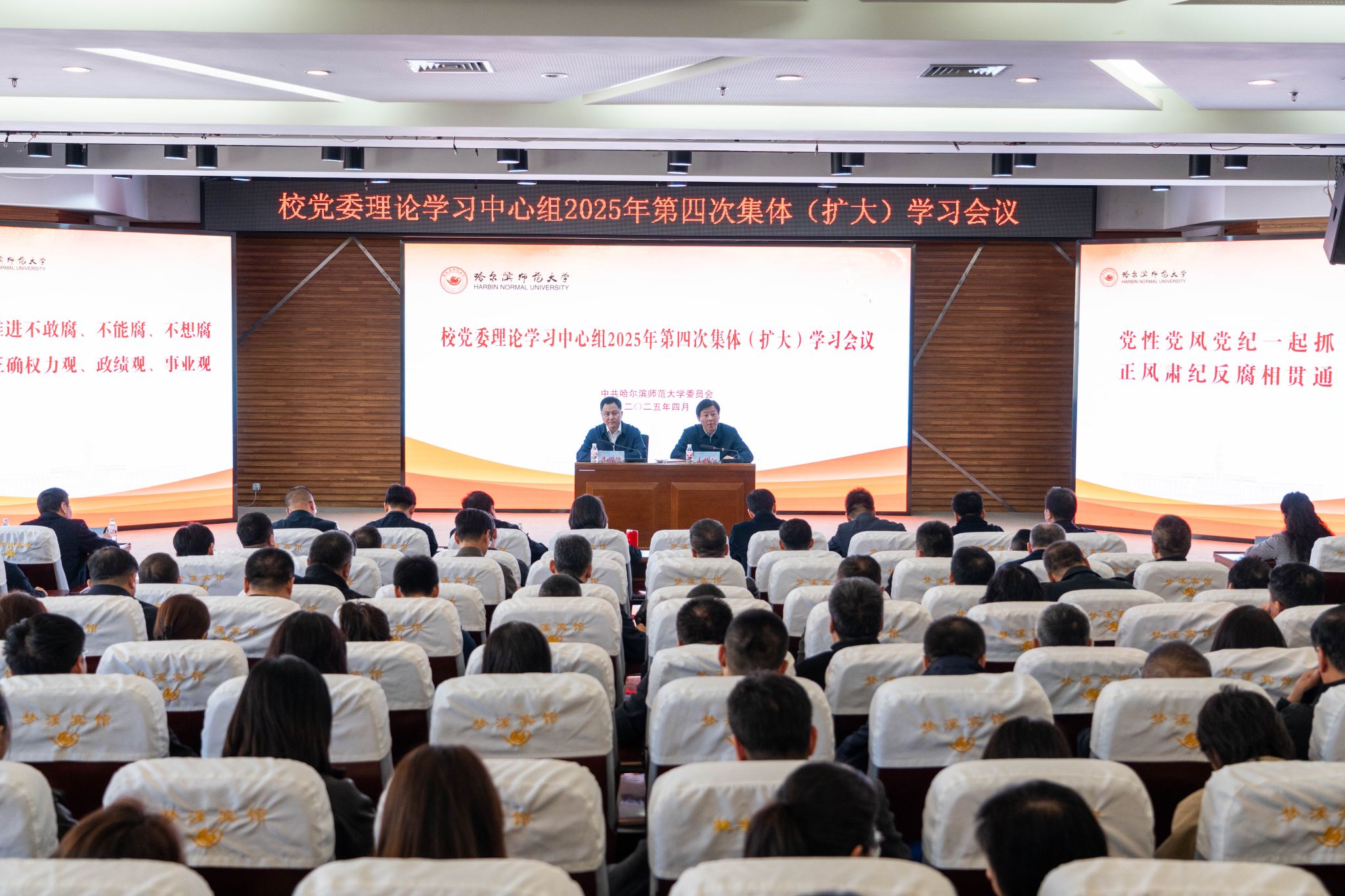 4月9日,哈尔滨师范大学召开2025年全面从严治党暨警示教育大会,深入学习贯彻习近平总书记在二十届中央纪委四次全会上的重要讲话精神,全面总结2024年学校全面从严治党工作取得的显著成效,部署2025年全面从严治党工作。校长、党委副书记蒋鲲,党委常委、纪委书记、省监委驻哈尔滨师范大学监察专员赵洪斌出席会议并讲话,党委副书记王辉主持会议,学校党政领导班子成员参加会议。会议通报了学校发生的违纪违法案件和教育系统发生的违反中央八项规定精神、...