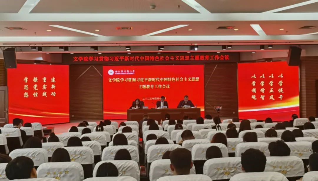 4月19日下午,文学院学习贯彻习近平新时代中国特色社会主义思想主题教育工作会议在江北校区梦溪宾馆二楼会议室召开。学校主题教育第二指导组副组长、高教研究与教学质量评估中心主任康丹丹,第二指导组成员:教务处副处长李苗、党委统战部副部长栾慎勇、高教研究与教学质量评估中心科长李小雨出席会议。学院领导班子成员、学院师生党员参加会议。会议由院长侯敏主持。 .会上,刘宗波对文学院深入开展学习贯彻习近平新时...
